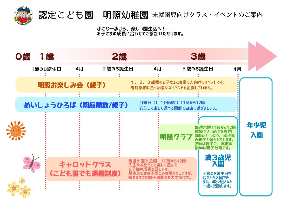 「パチパチクラブ1歳&2歳クラス」が【こども誰でも通園制度】を利用した「キャロットクラス」に変わります!!そして月に1回程度「めいしょうひろば」(園庭開放)を行います。