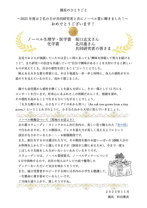 園長のひとりごと 2025年11月 2025 11/13 2025.11.13 2025.11.13 よかったらシェアしてね! URL Copied! URL Copied! 園長のひとりごと 2025年10月