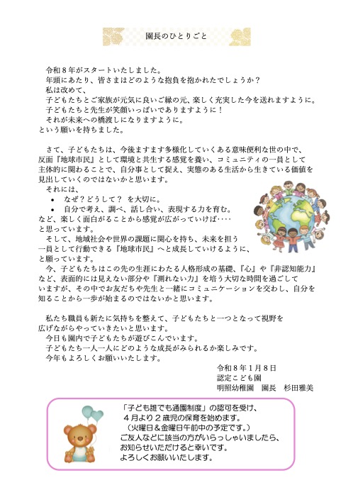 園長のひとりごと 2026年1月 2026 1/09 2026.01.09 2026.01.09 よかったらシェアしてね! URL Copied! URL Copied! 園長のひとりごと2025年12月