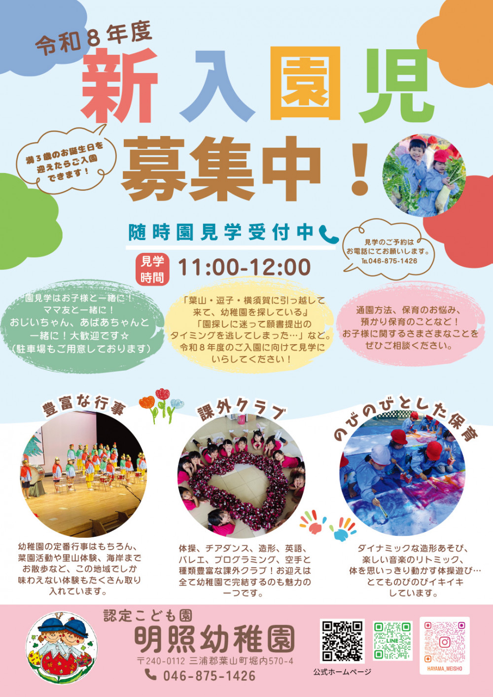 明照幼稚園では令和8年度の新入園児さんを募集しております🌸📛