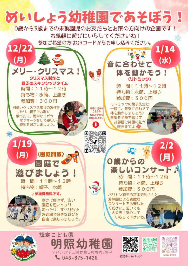 - 開催場所:明照幼稚園(変更する場合がございます)